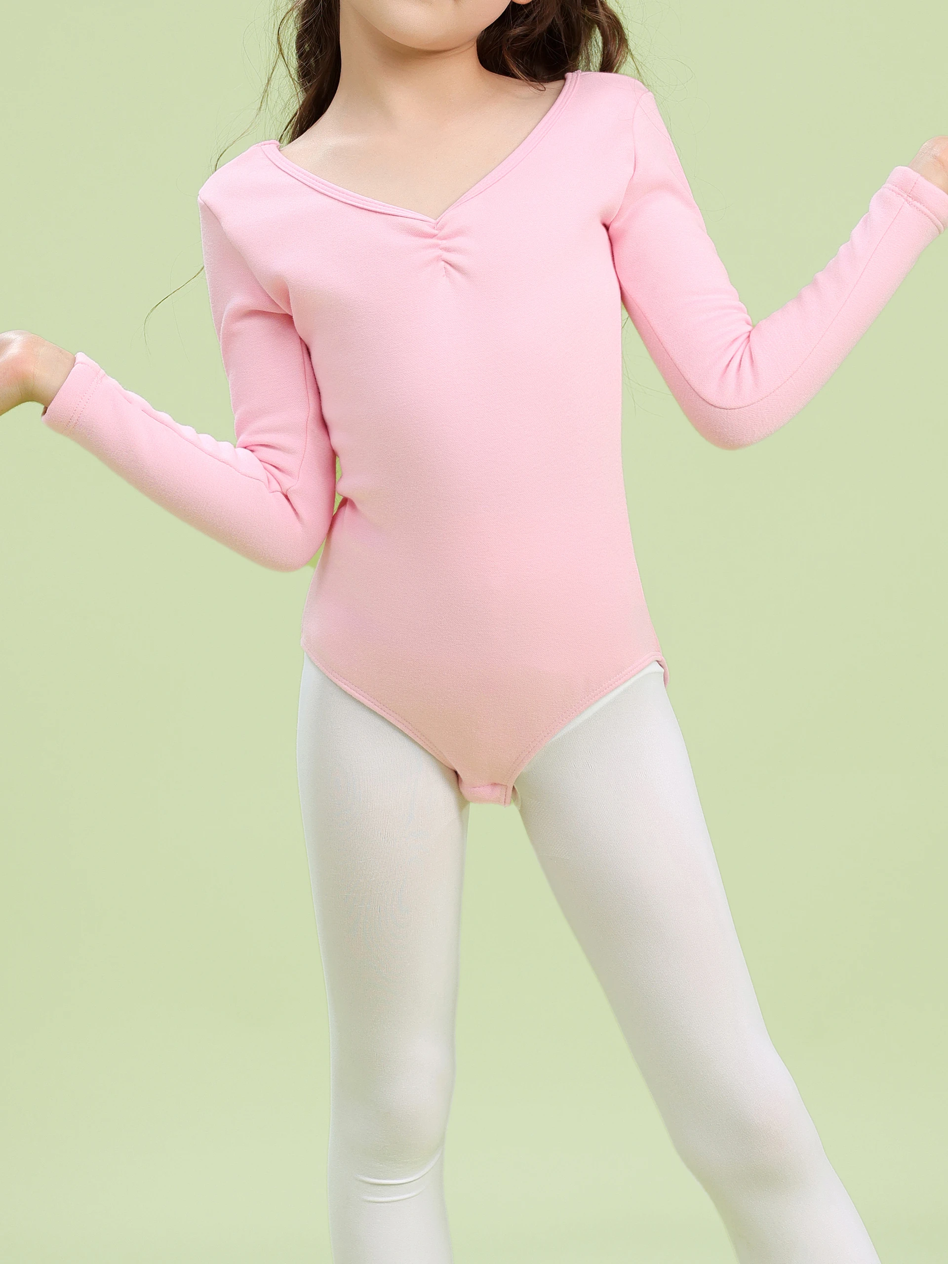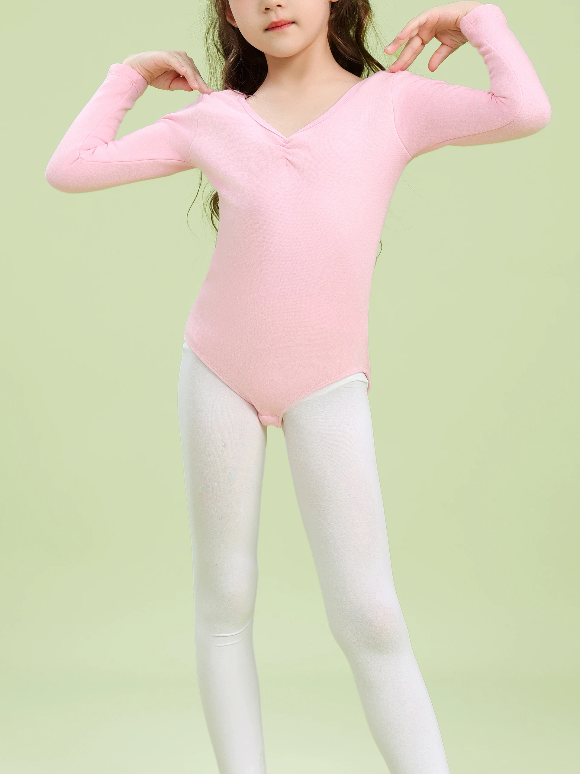 This beautiful long sleeve leotard is an elegant and warm choice for the dedicated dancer. It combines a clean, basic silhouette with a delicate, feminine touch on the back.