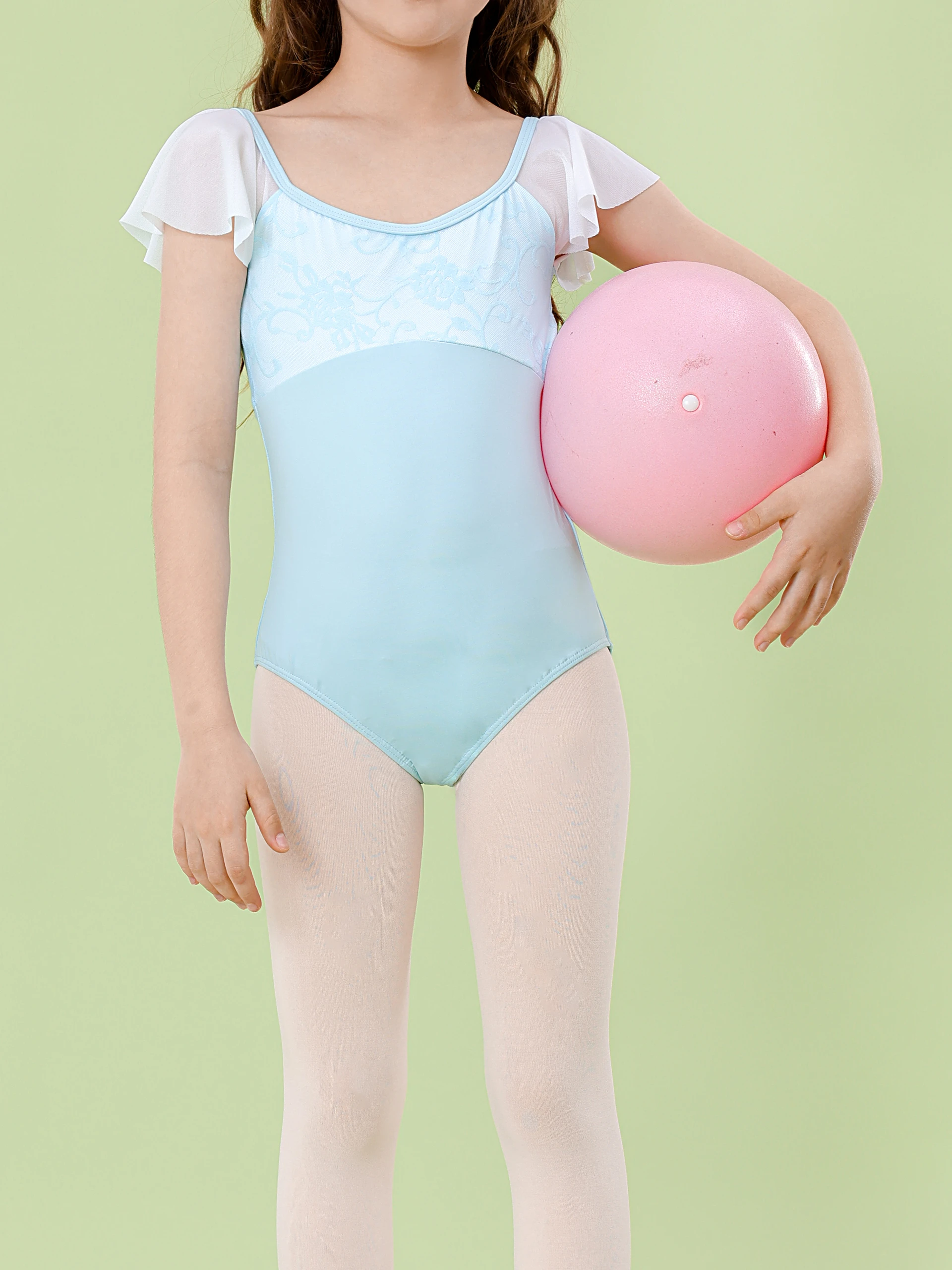 This elegant leotard features a beautiful square neckline and charming ruffle sleeves, creating a sophisticated and feminine look perfect for ballet.