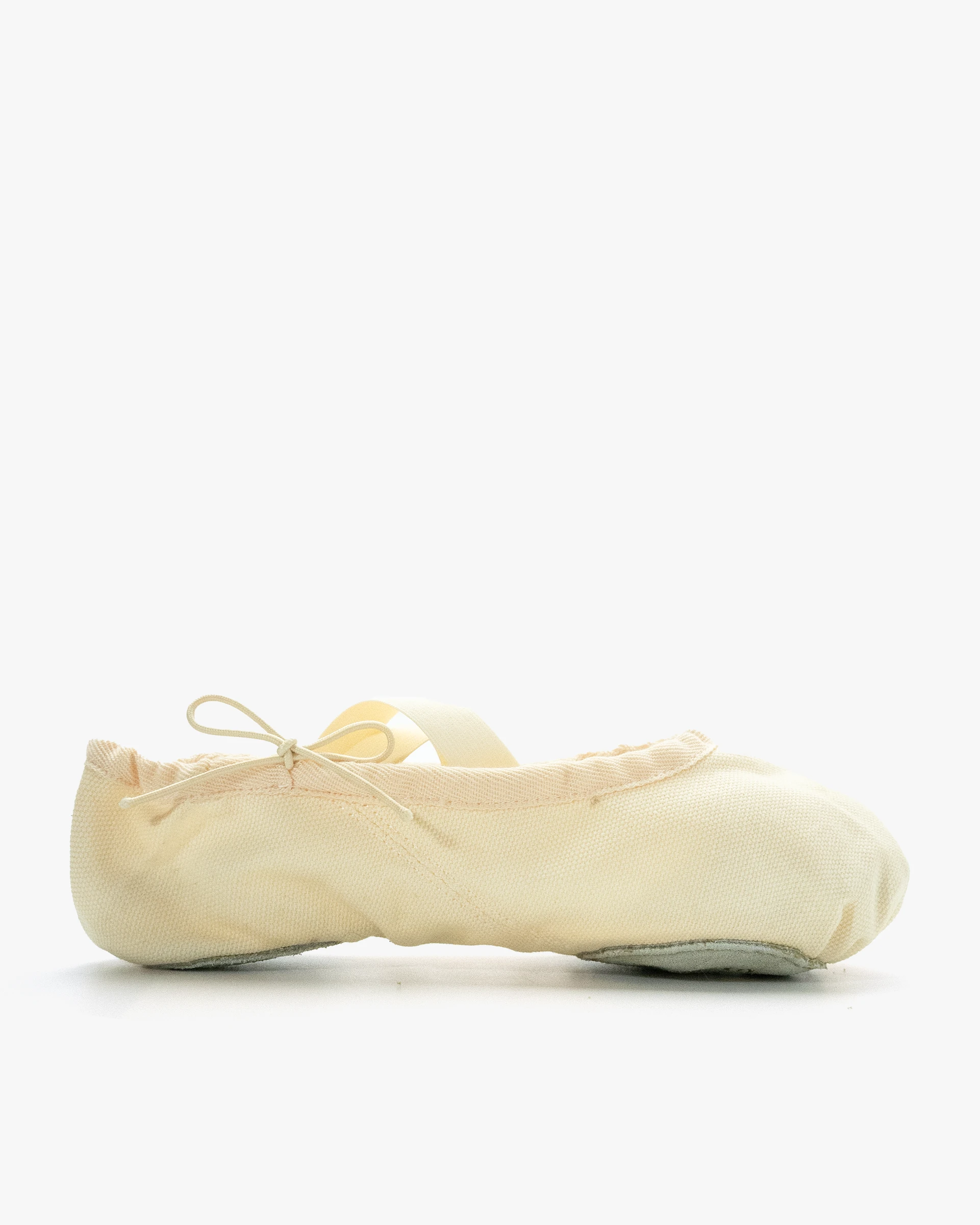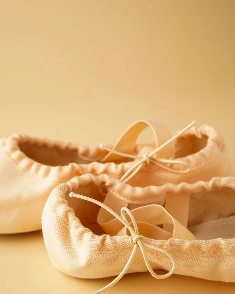 Soft, breathable canvas paired with elegant satin ribbons. Materials selected for comfort during long rehearsals and performances.