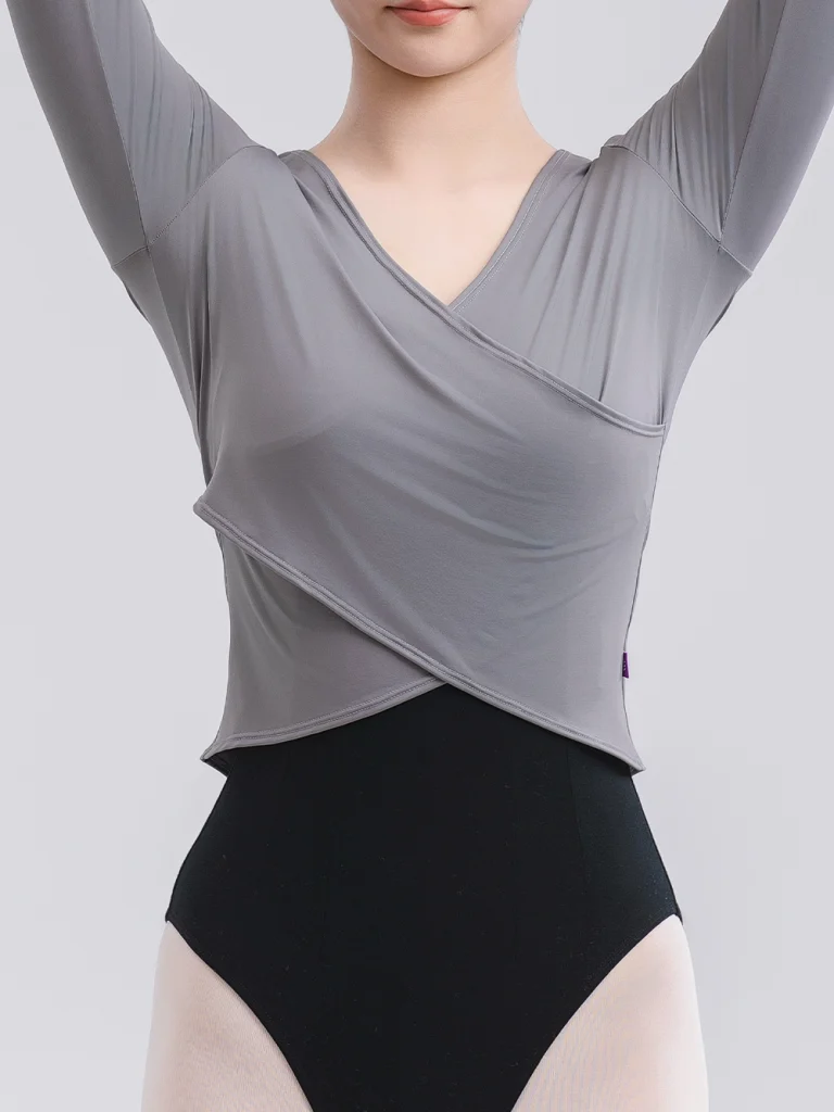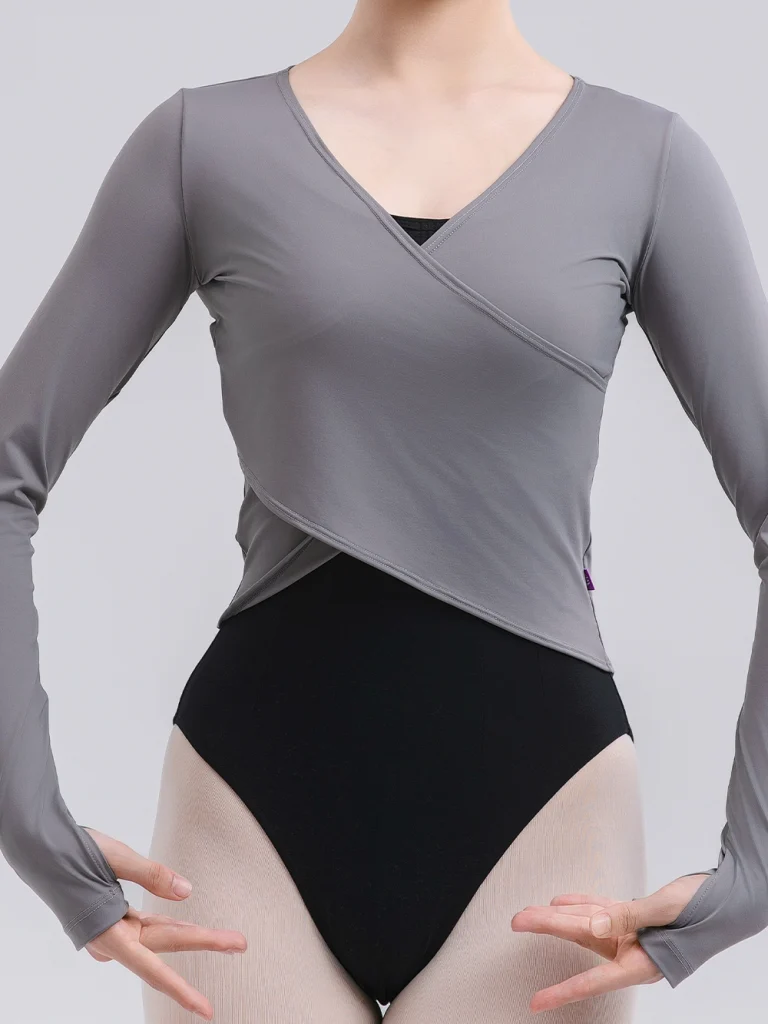 This long-sleeved practice top is designed for dancers, with a slim-fit cut that perfectly contours the body and provides warmth. It clearly showcases a dancer's body lines and effectively protects arm muscles, making it an ideal choice for ballet, gymnastics, and various body conditioning practices.