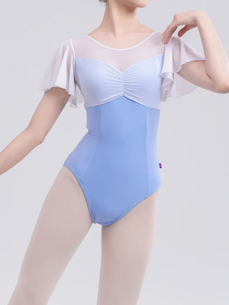 This practice leotard cleverly blends graceful ruffle sleeves with a unique print design, infusing professional functionality with an elegant artistic aesthetic. It features built-in padding to offer dancers ultimate comfort and convenience, making it an ideal choice for ballet, body conditioning, and important occasions like auditions.