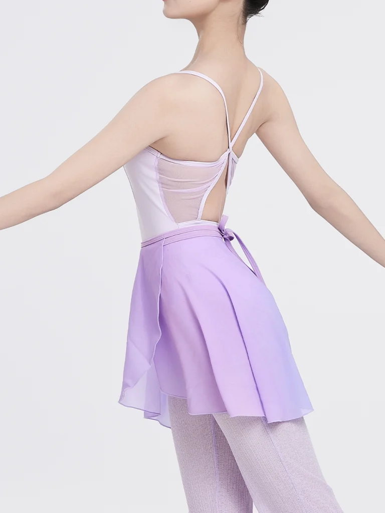 This dance half-skirt is made from a light and airy chiffon fabric. With its unique ombre coloring and convenient pull-on design, it adds an elegant artistic touch to a dancer's practice. The fluid lines and dreamy colors make every movement full of graceful beauty.