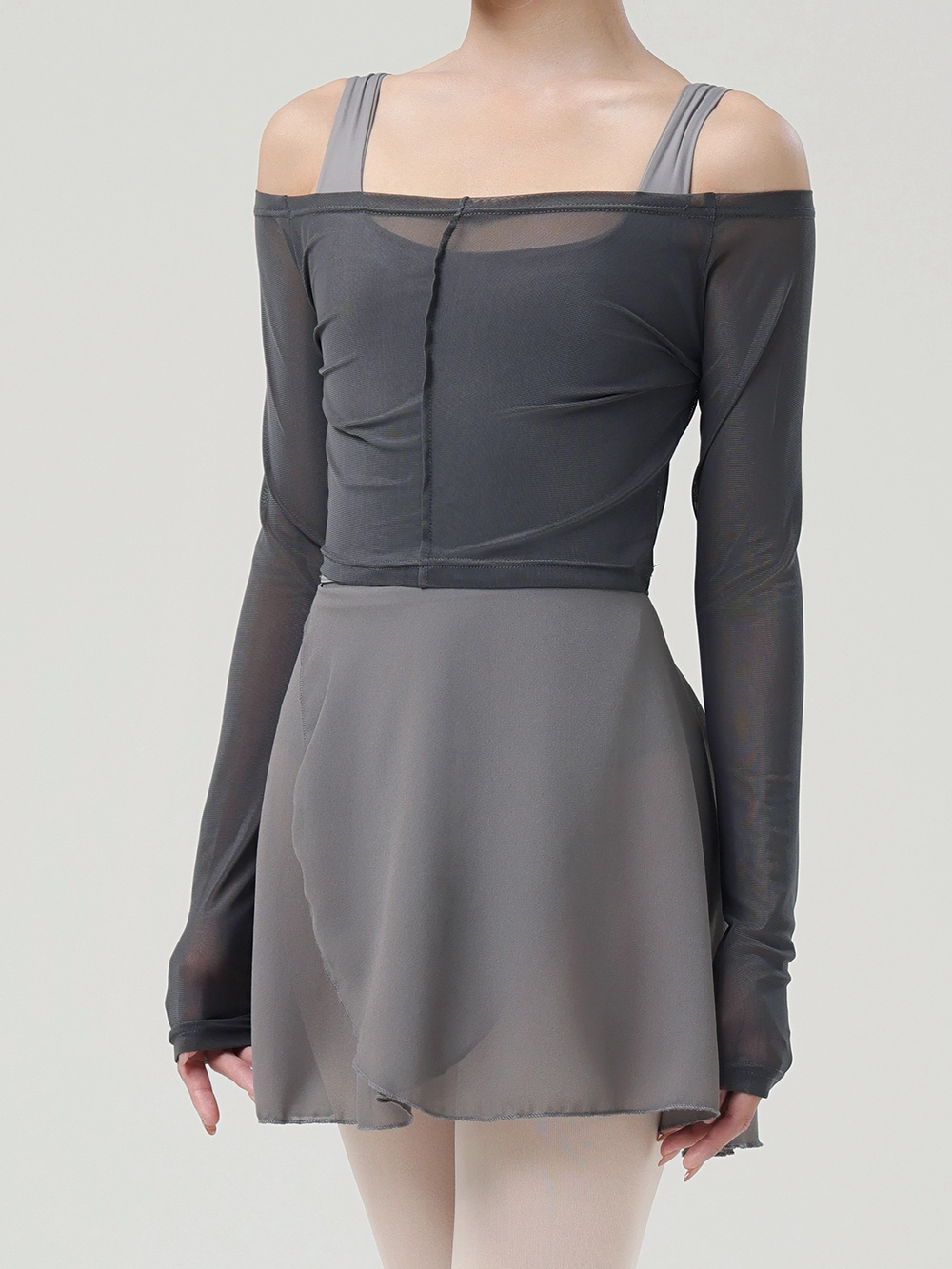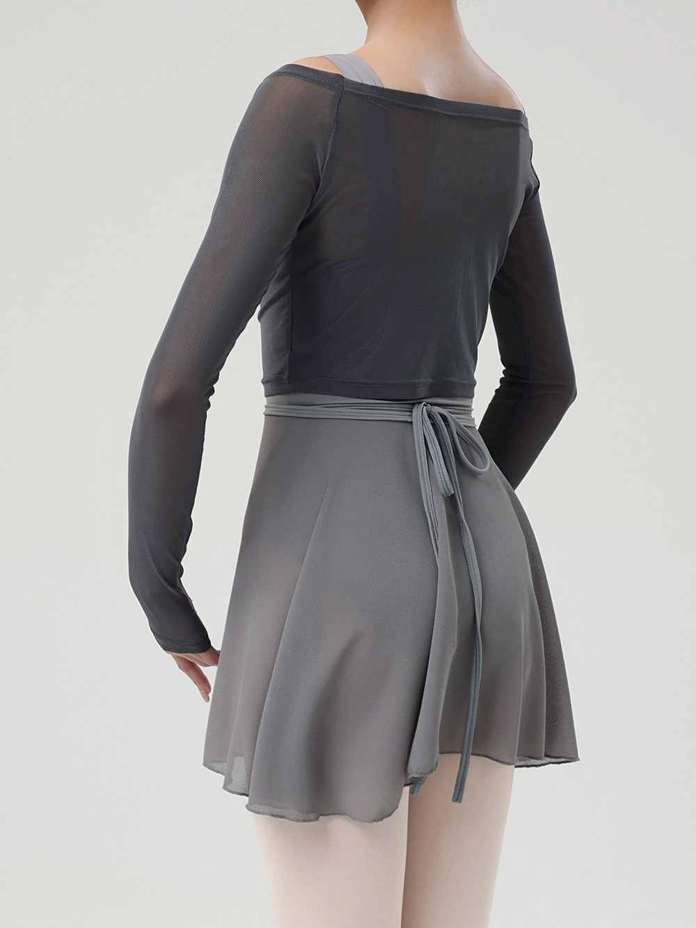 This short dance skirt features a convenient pull-on design, allowing dancers to quickly and effortlessly put it on or take it off during training. Its lightweight mesh fabric and elegant cut provide an unrestricted wearing experience for ballet, gymnastics, and body conditioning, making it an ideal companion for a dancer's daily practice.