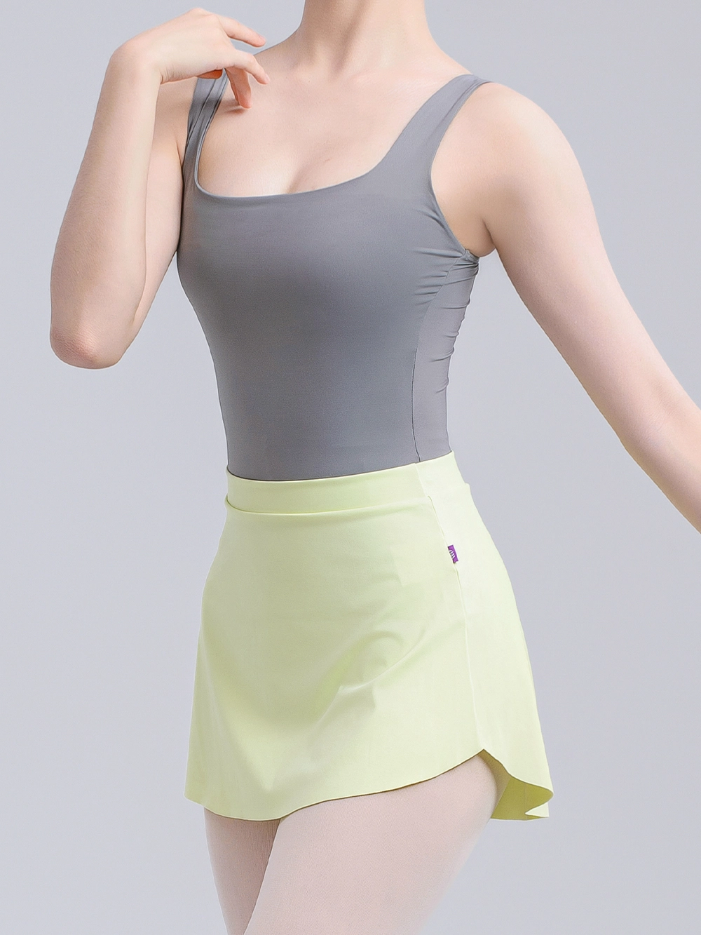 This short dance skirt is designed for summer training, using a lightweight and breathable fabric that keeps dancers cool and dry in warm weather. The simple half-skirt design is easy to pair, and its elegant cut beautifully showcases a dancer's graceful leg lines.