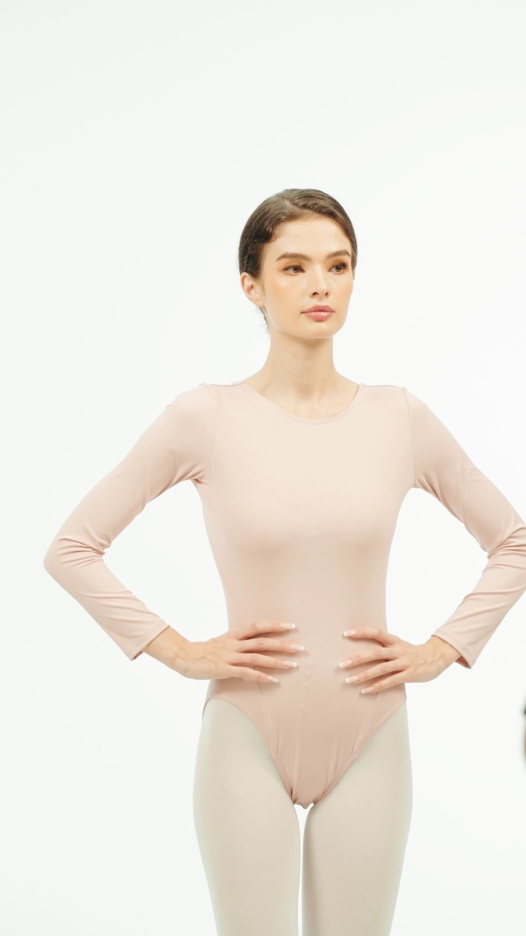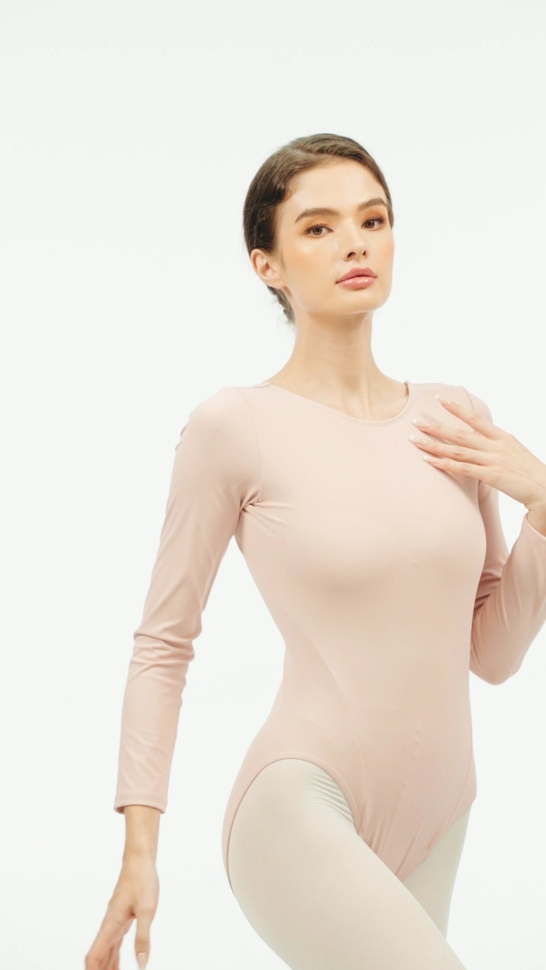 Linear Extension: The long sleeve silhouette is designed to elongate the arm's line, providing gentle warmth during rigorous autumn and winter training without compromising fluid motion.
