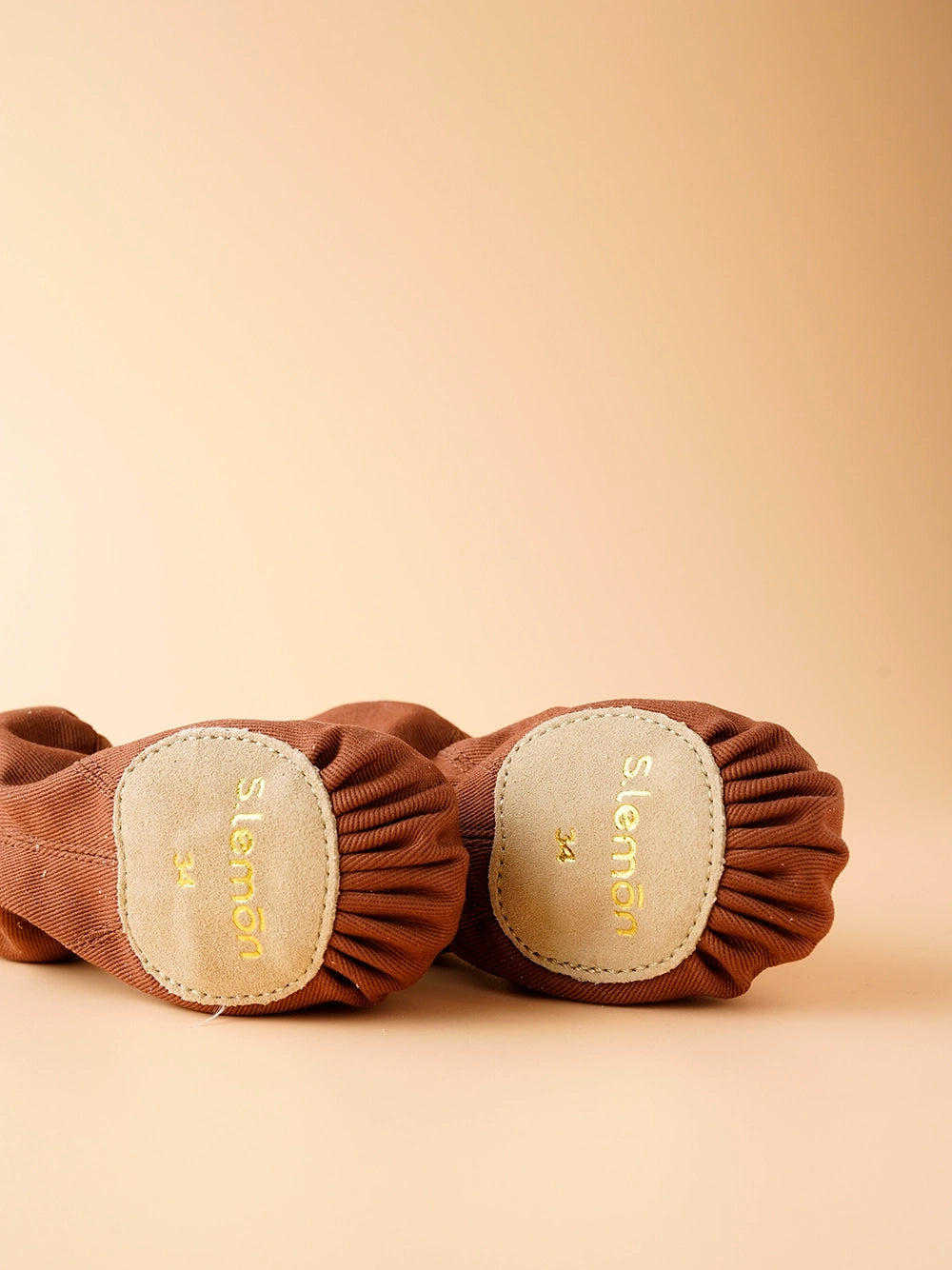 These ballet shoes are made from a stretchy fabric, designed to hug the foot securely without slipping off. The soft sole and excellent fit make them an ideal choice for dancers' ballet training and practice.